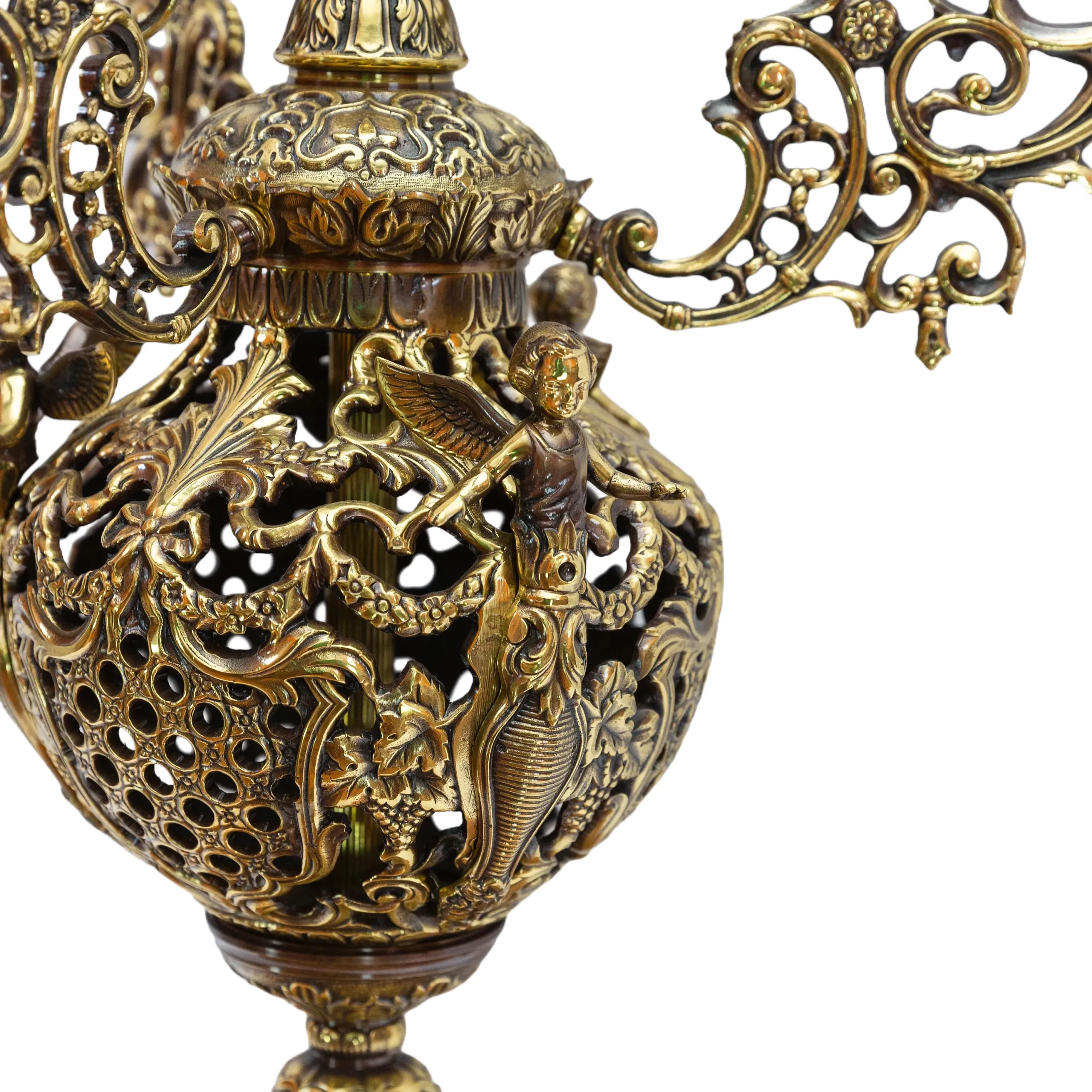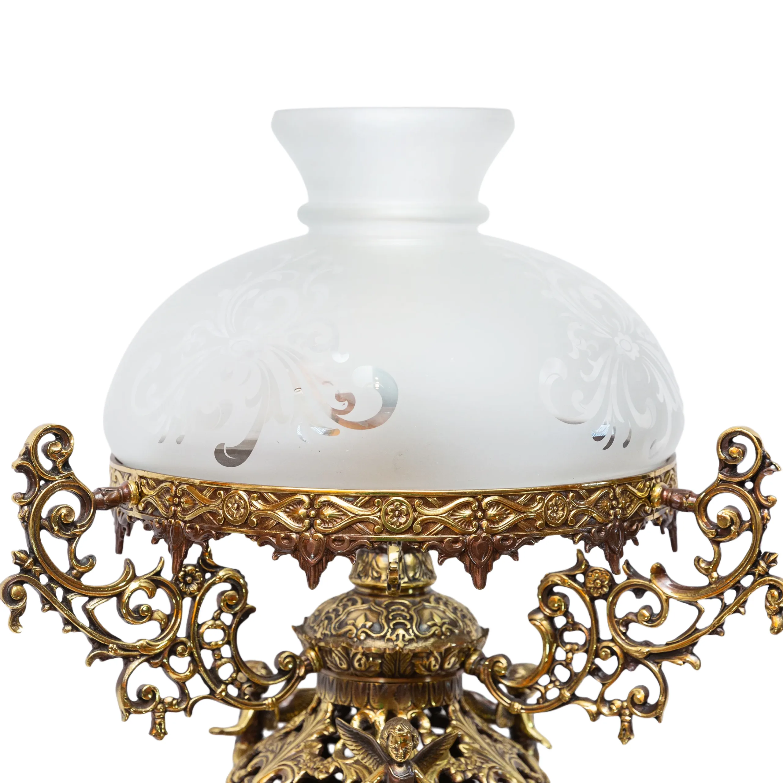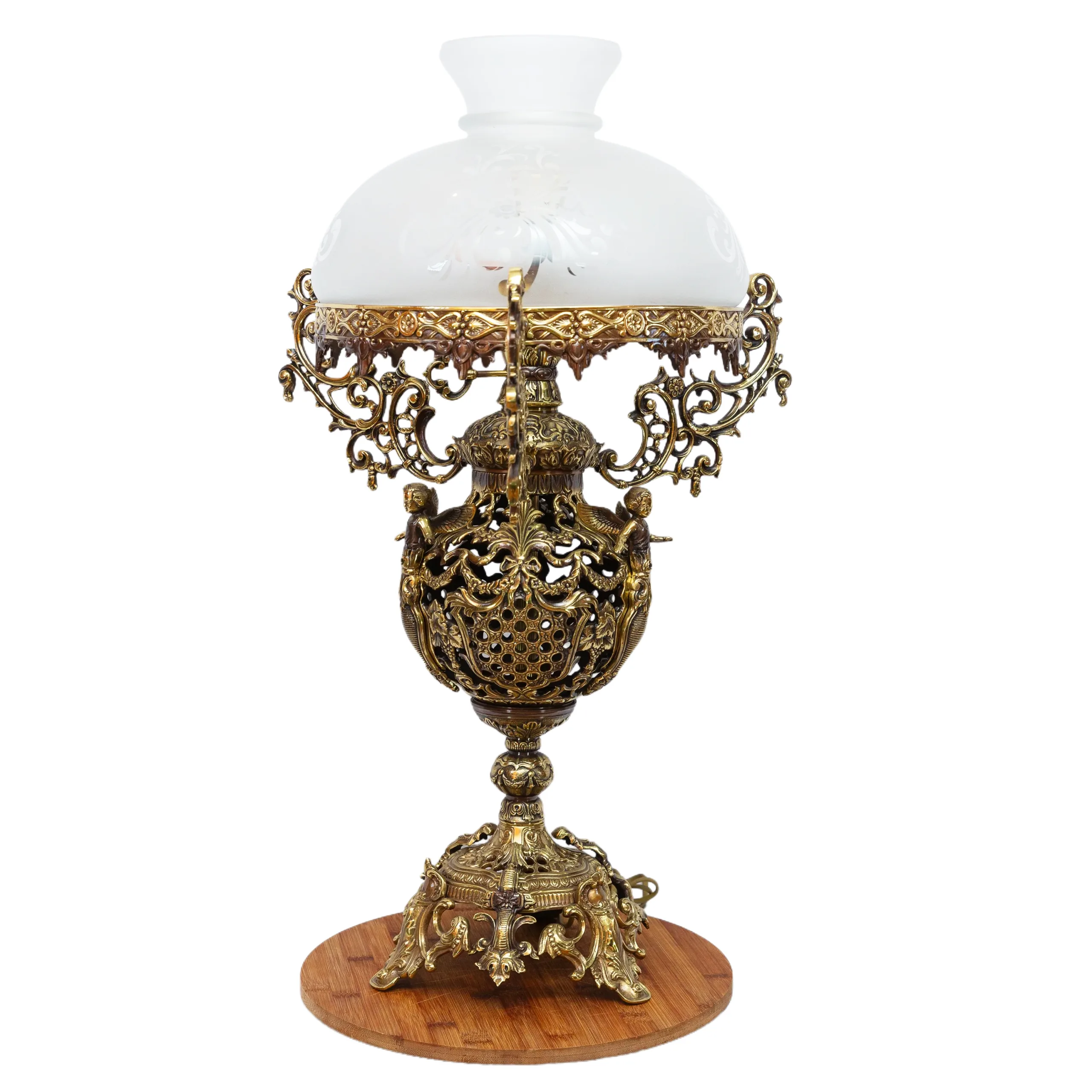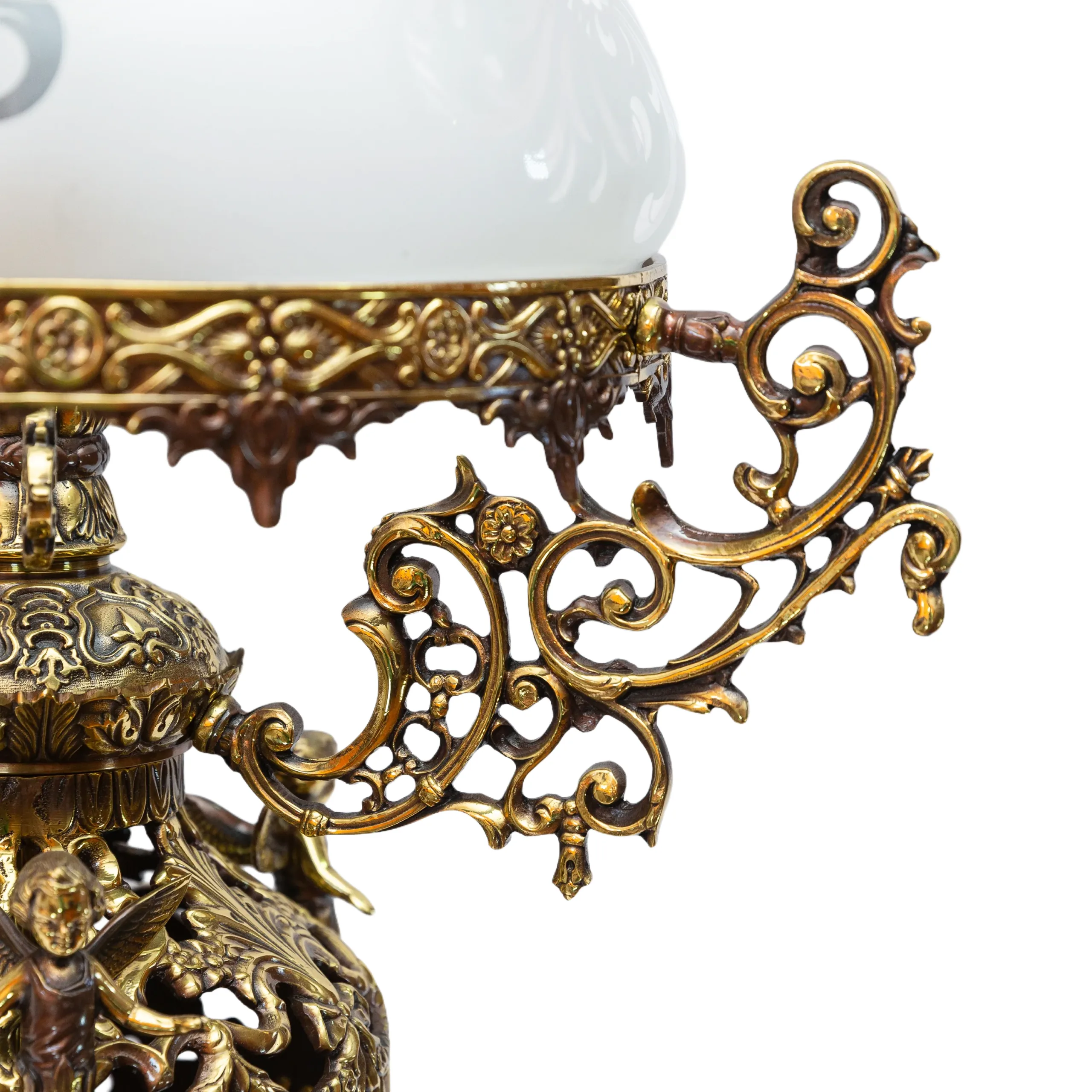 This lamp features high-quality, durable bronze. Each piece is forged and intricately crafted by skilled artisans, employing processes refined over centuries.